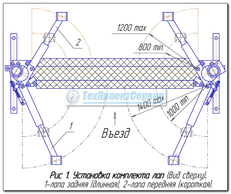 - устанавливается на 2-стоечные гаражные подъемники модели П191 и предназначен для подъема и обслуживания автомобилей с несущей рамой типа "Газель", УАЗ и др. с полной массой до 3500 кг