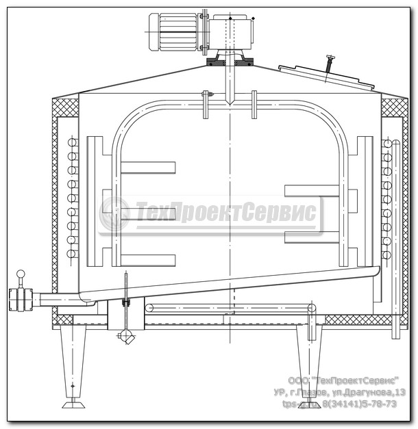 - стандартная комплектация: трубчатый змеевик охлаждения, теплоизоляция, паровой барботер, привод, рамная мешалка с лопастями, датчик температуры, головка моющая, затвор дисковый, люк, выключатель, клапан воздушный, датчик уровня;