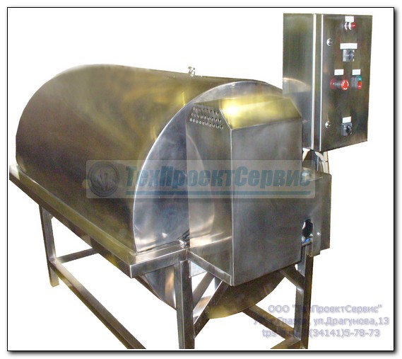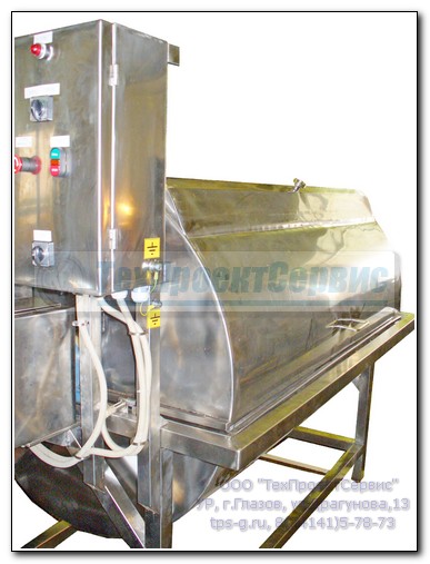 - загрузочно-разгрузочное окно закрывается не шторками (как в обычном УПТ), а трубами по всей длине барабана с циркулирующим внутри хладагентом, что увеличивает площадь теплообмена, а также полностью исключает вероятность защемления мешочков между шторками;